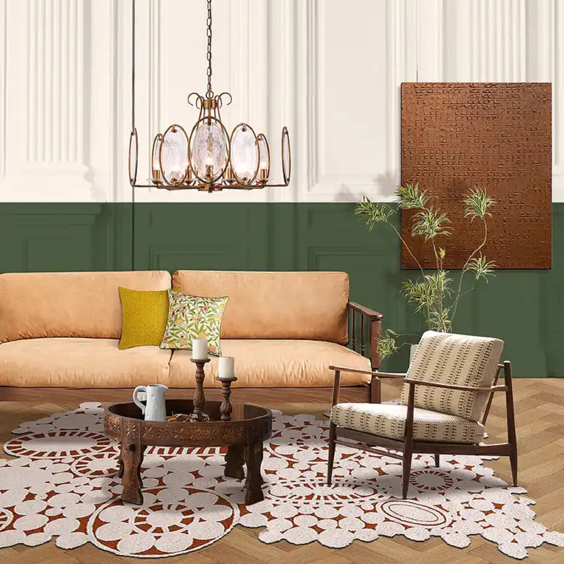 从法式浪漫电影走出来的客厅呀,坐在舒适的沙发上,碎花抱枕可以当靠背,也可以抱在怀里休息,不规则的红色地毯更是增加复古氛围。